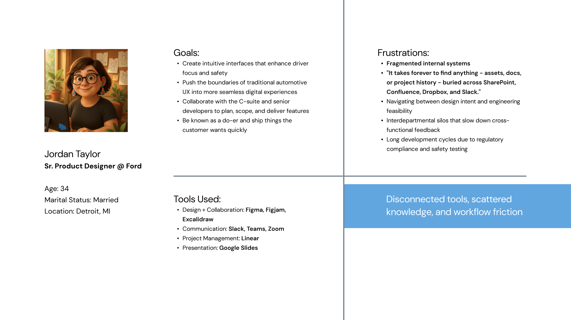 Collaboration between EPD teams is strained and scattered. While conducting research on various issues that contribute to this problem, I discovered that a main cause of this was a lack of centralized information, leading to frustration and time wasted.