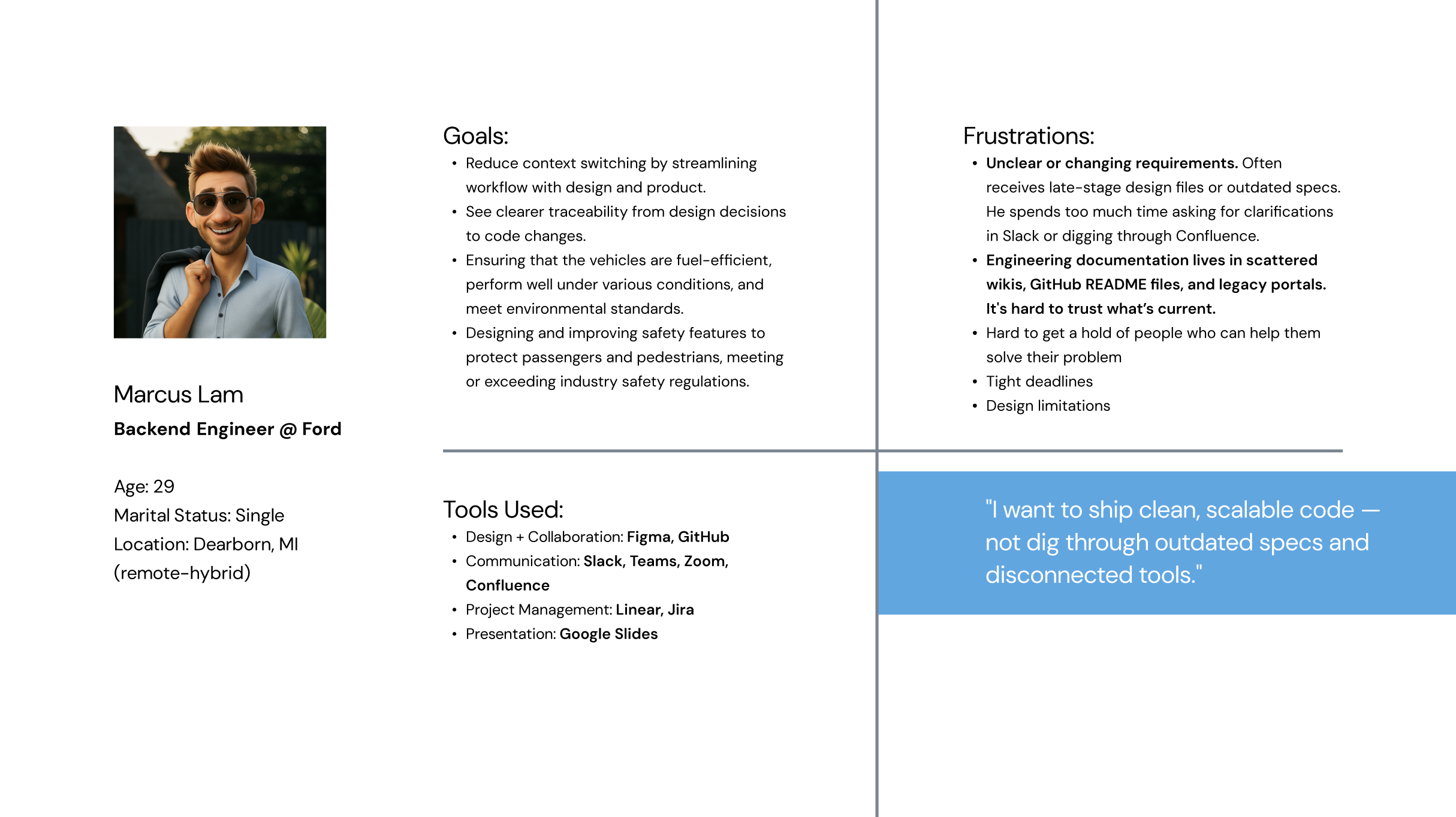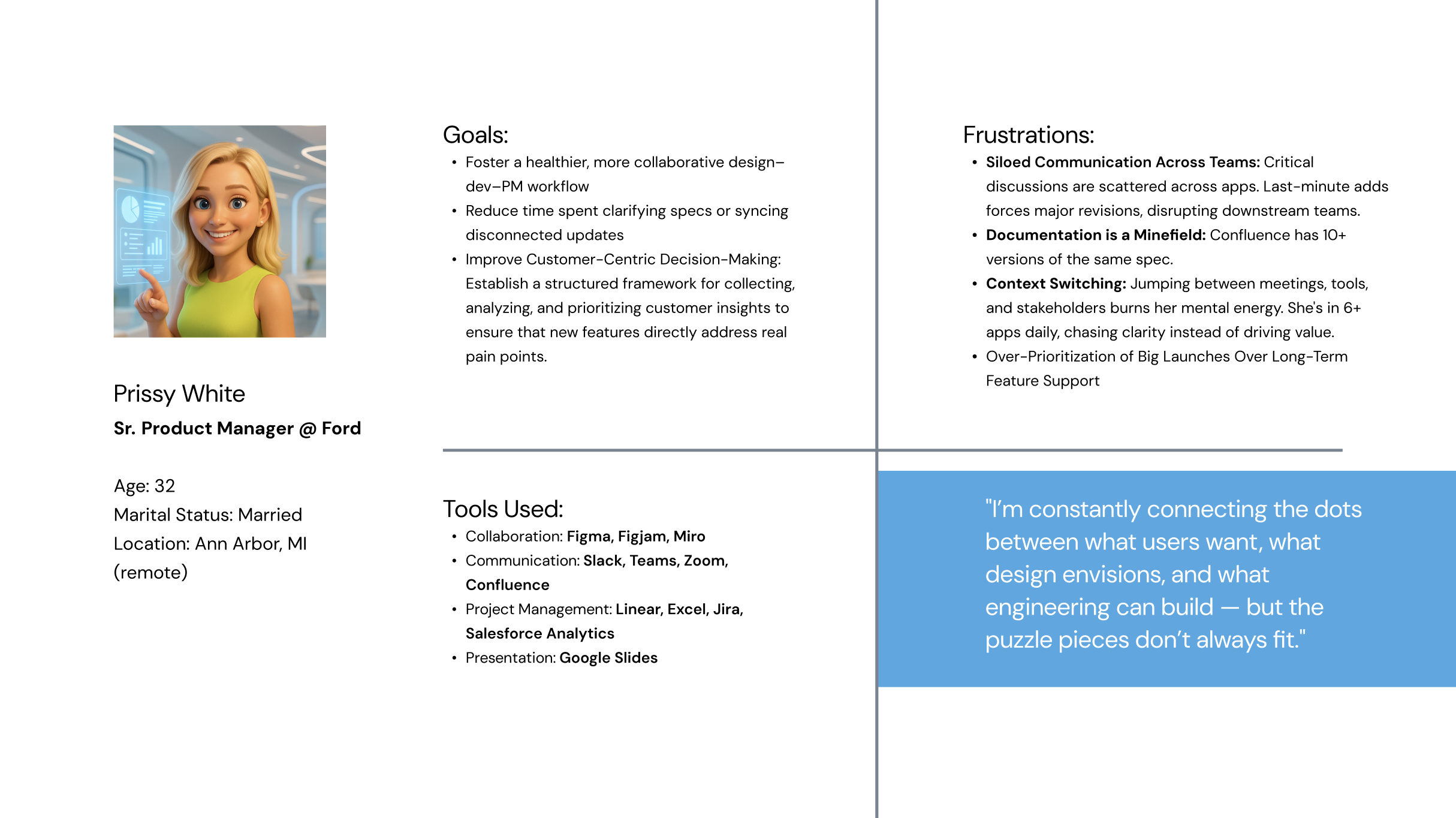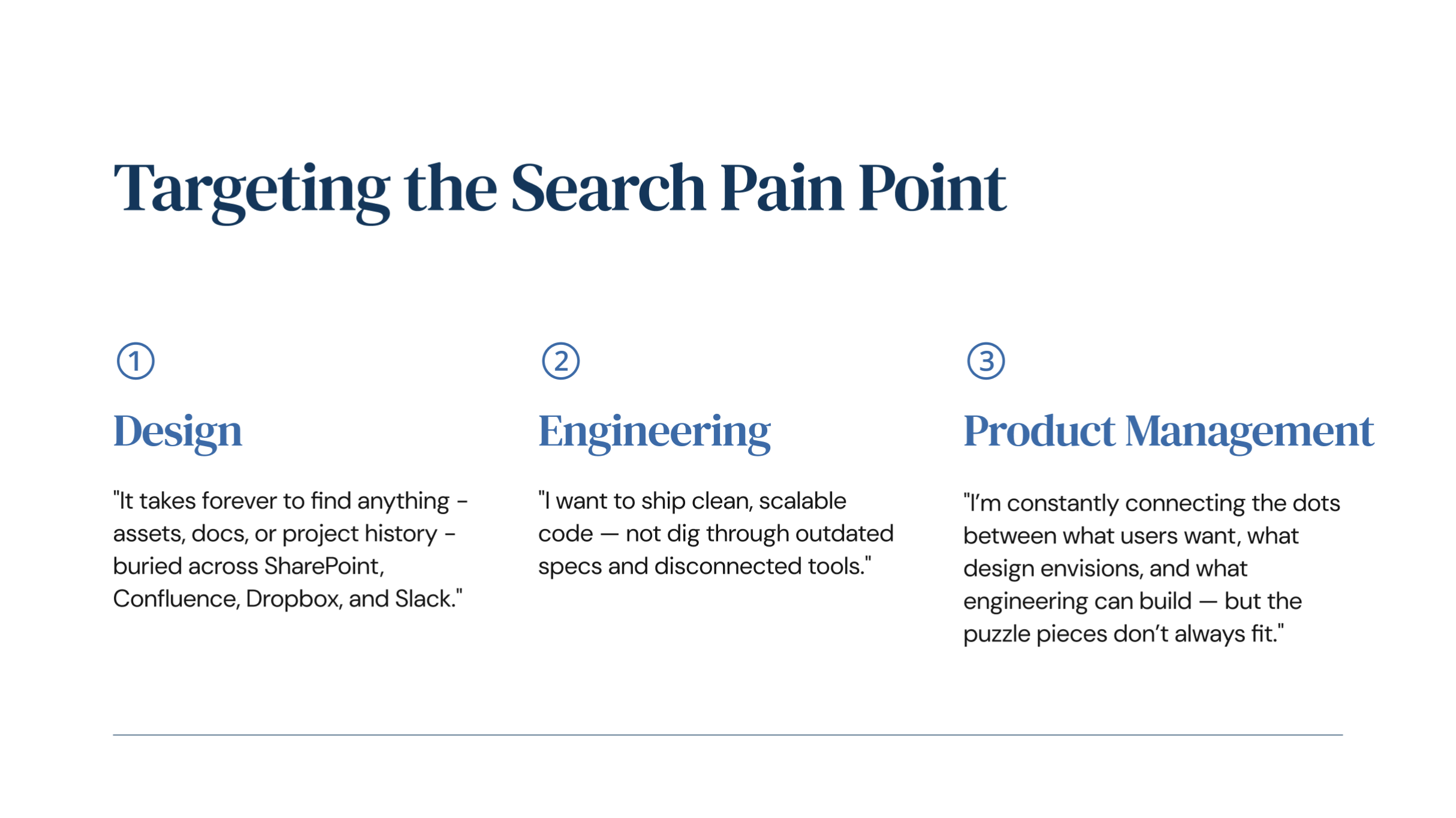 With the utilization of 5 apps on average, designers, product managers, and engineers spend an unnecessary amount of time searching for information across platforms, contributing to lack of synergy across teams.