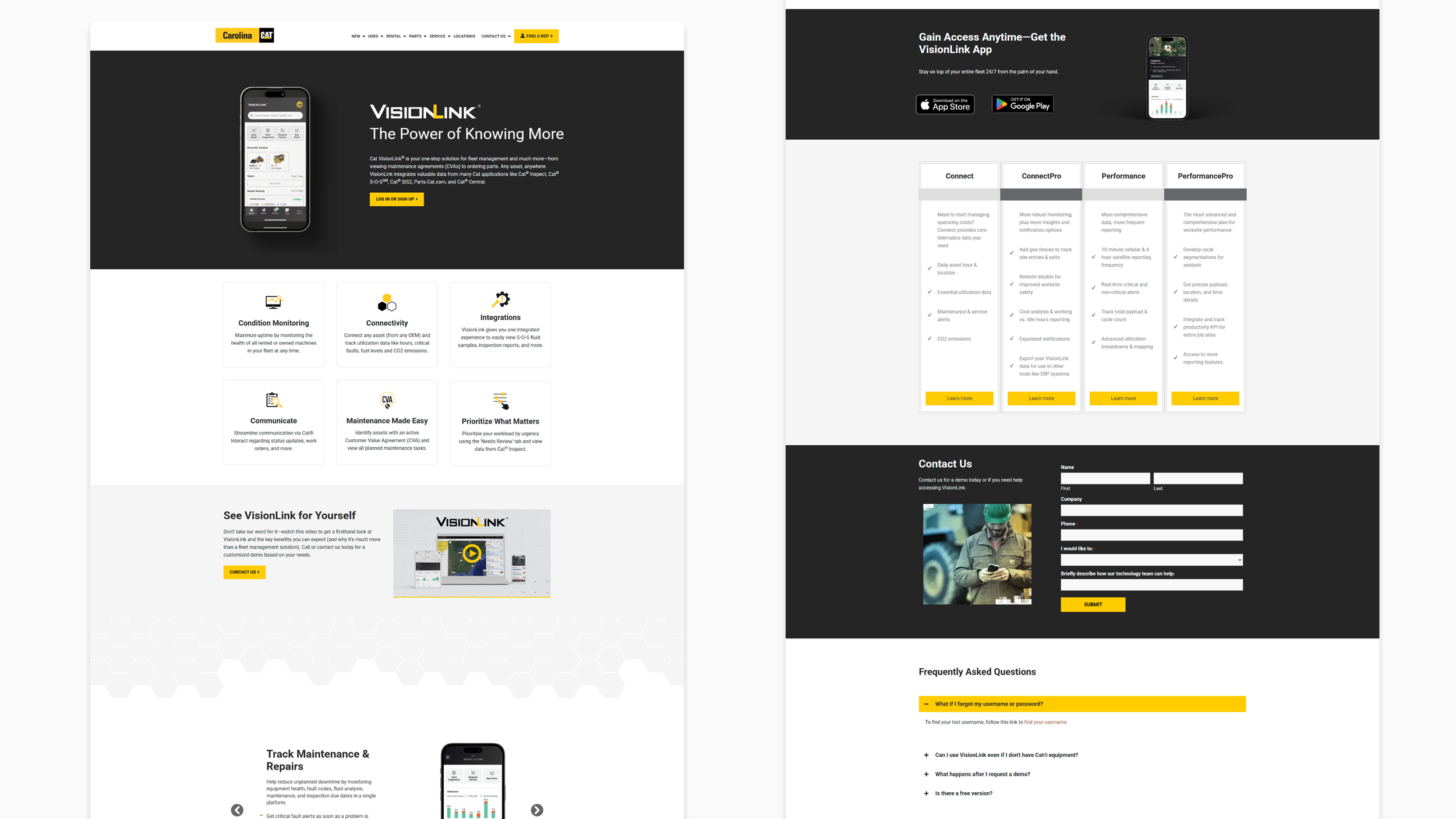 In parallel, I designed and supported web and marketing experiences that balanced Caterpillar’s no-nonsense aesthetic with clarity, usability, and performance. I implemented Salesforce Marketing Cloud Personalization to tailor website experiences for distinct customer personas—such as equipment buyers, operators, rental customers, and service-focused users—ensuring content, messaging, and journeys reflected real user intent. This work strengthened relevance across digital touchpoints, reinforced brand pride and loyalty, and helped translate Carolina Cat’s field-earned credibility into cohesive, high-impact digital experiences.