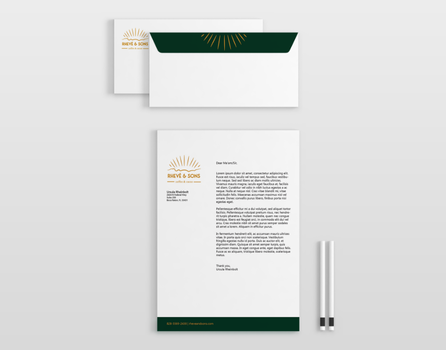 Inspired by the Sleeping Beauty ("la bella duermiente”) mountain ridge in Peru, the RHEVE & SONS mark reflects both place and process. The green and gold palette references Oro Verde—the green-gold hue of freshly dried Peruvian coffee beans and a symbol of exceptional quality.